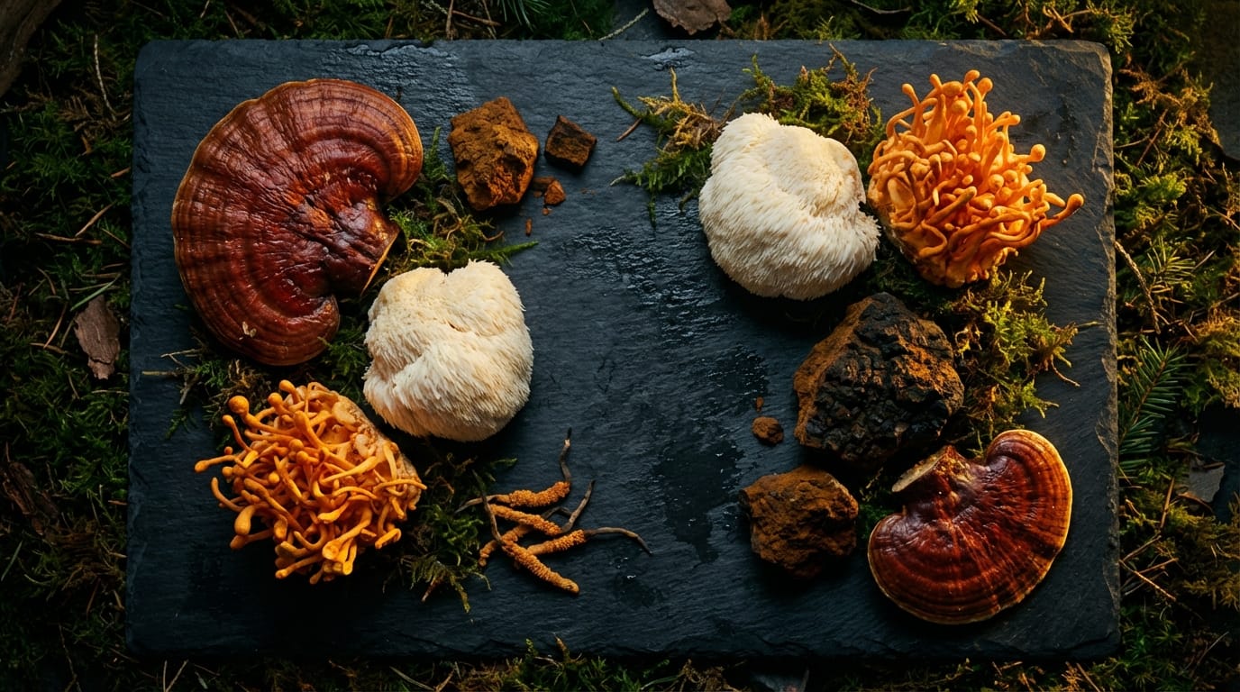 Association de plusieurs champignons ou adaptogènes pour obtenir des effets synergiques. Par exemple, Lion's Mane + Cordyceps pour concentration ET énergie.